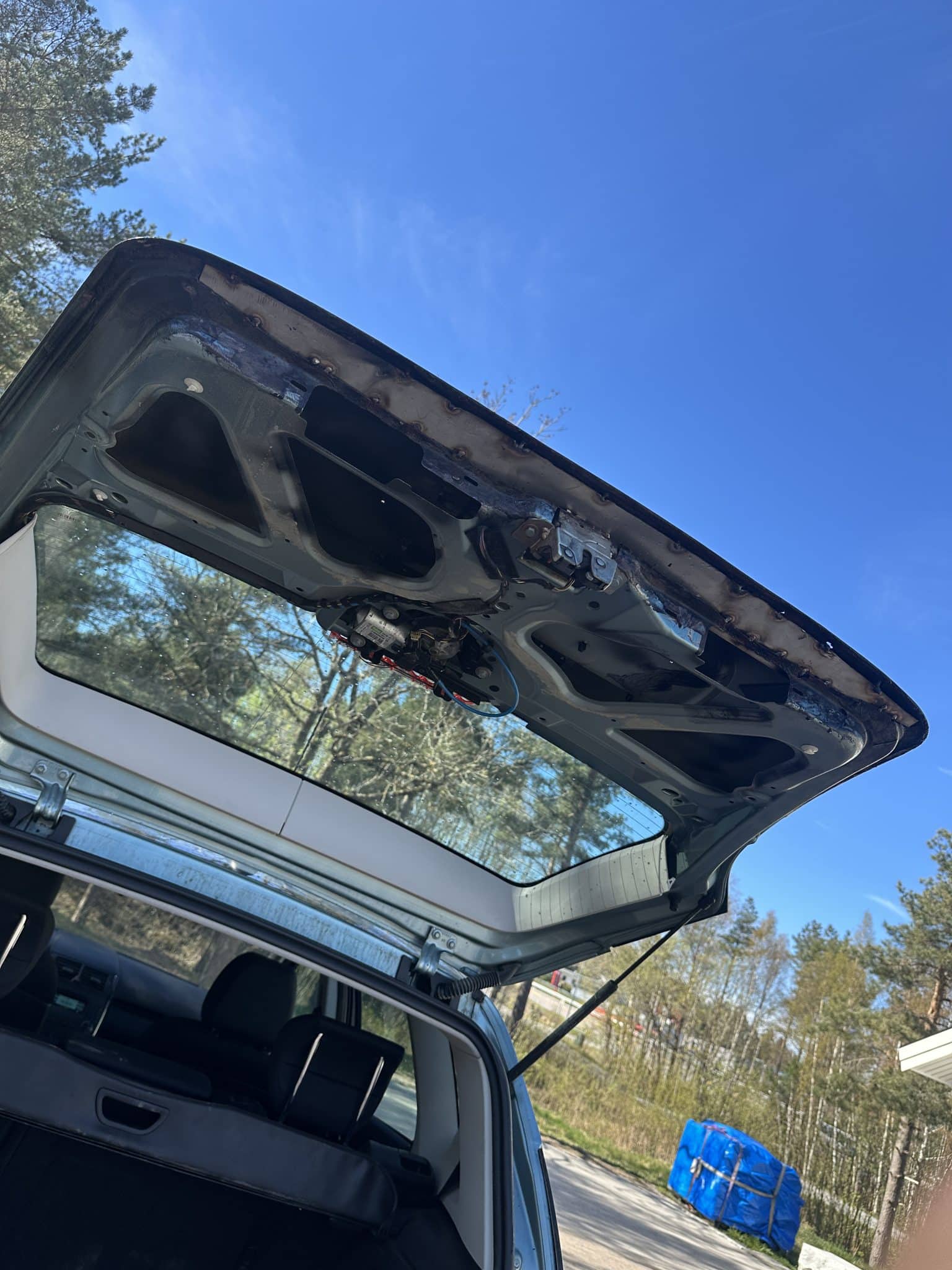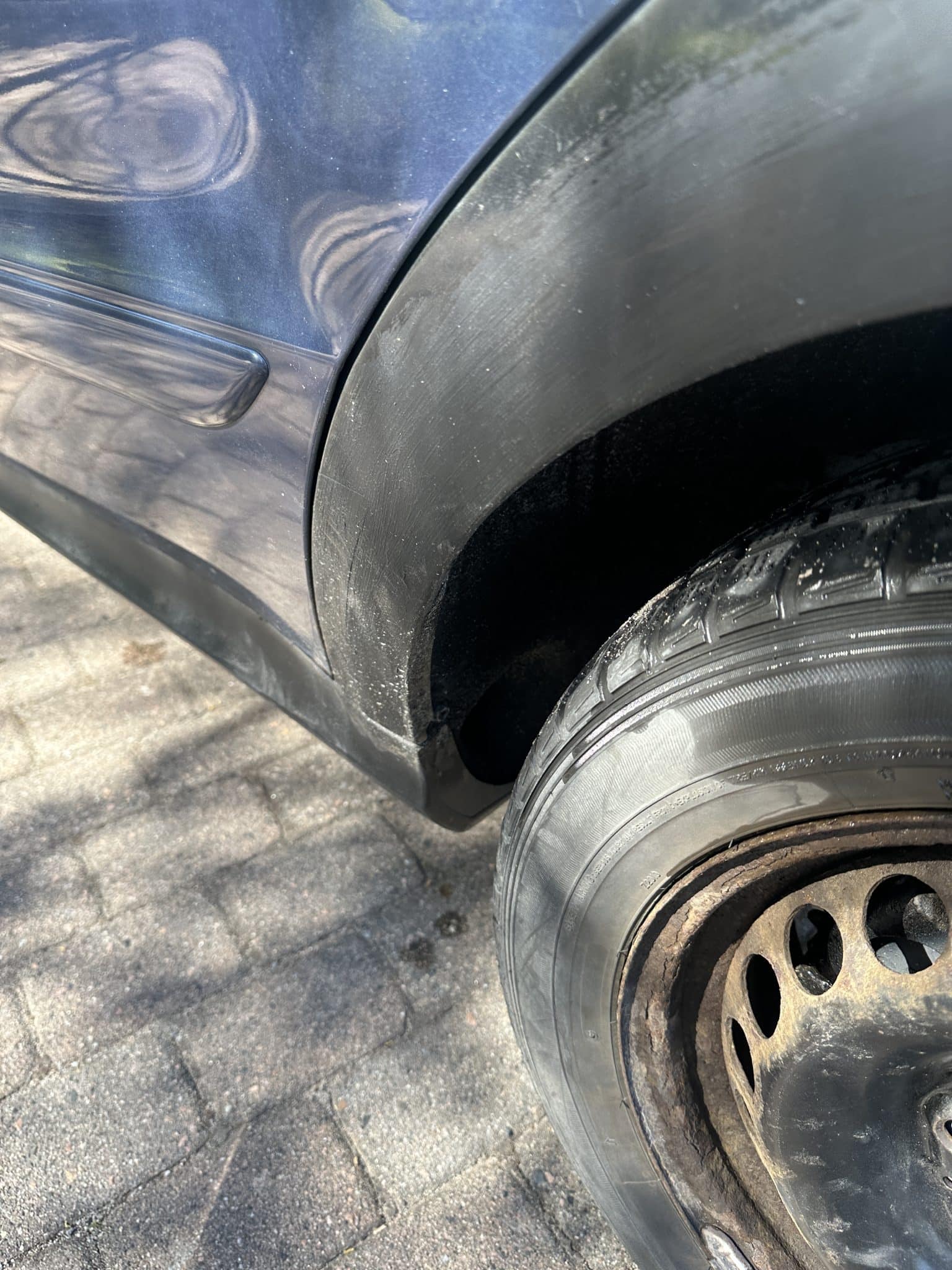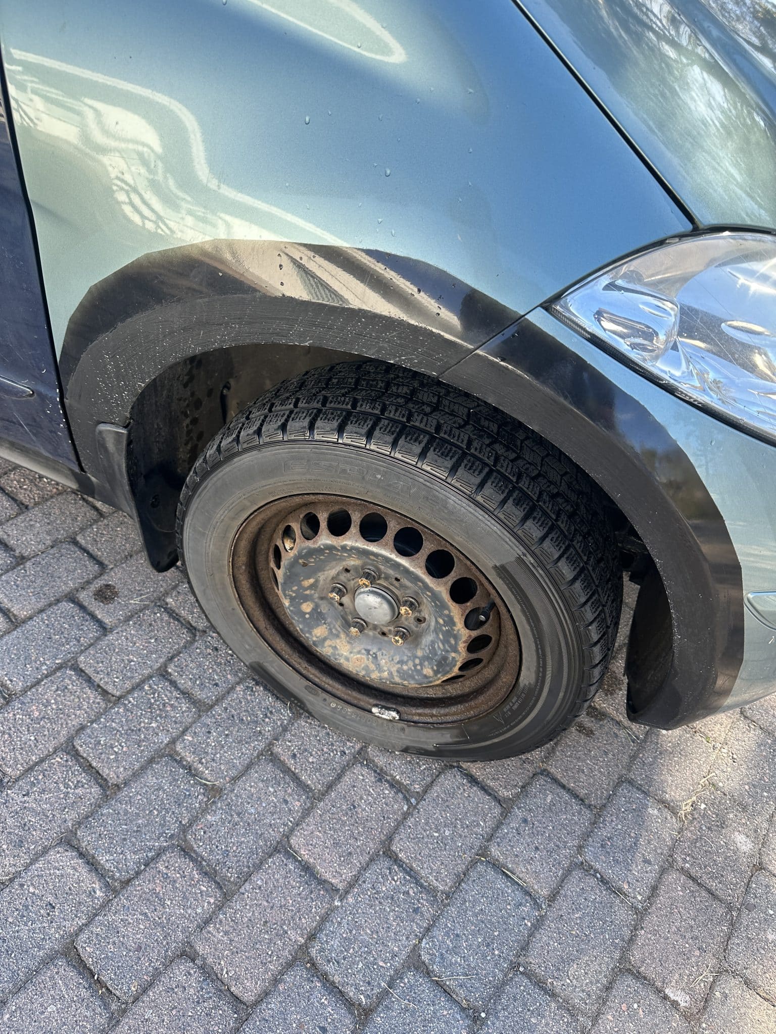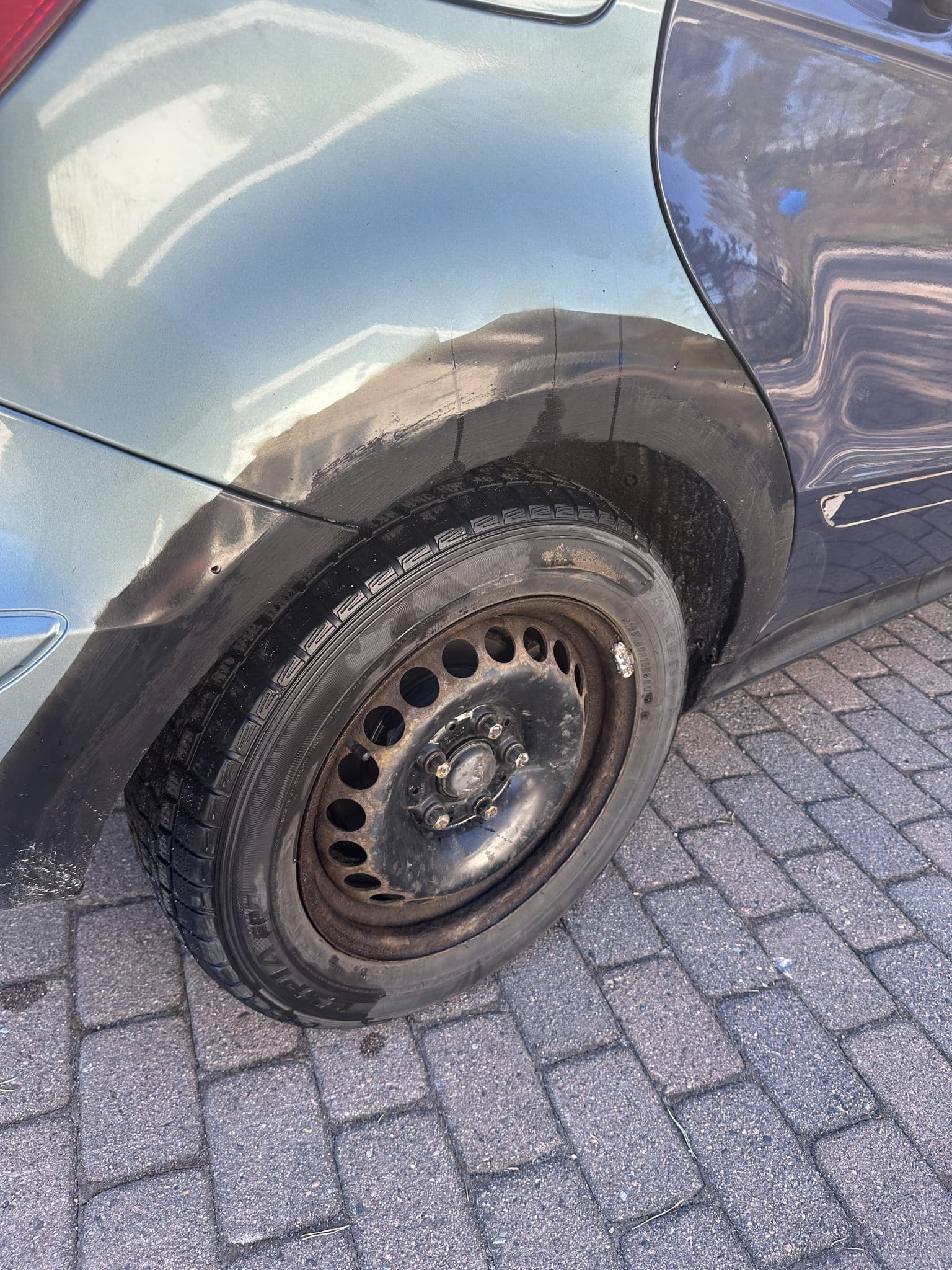 Bilen har flere farger, byttet dører, flekket på hjul buer, sveiset bak luke, mangler hjulbolt venstre bak