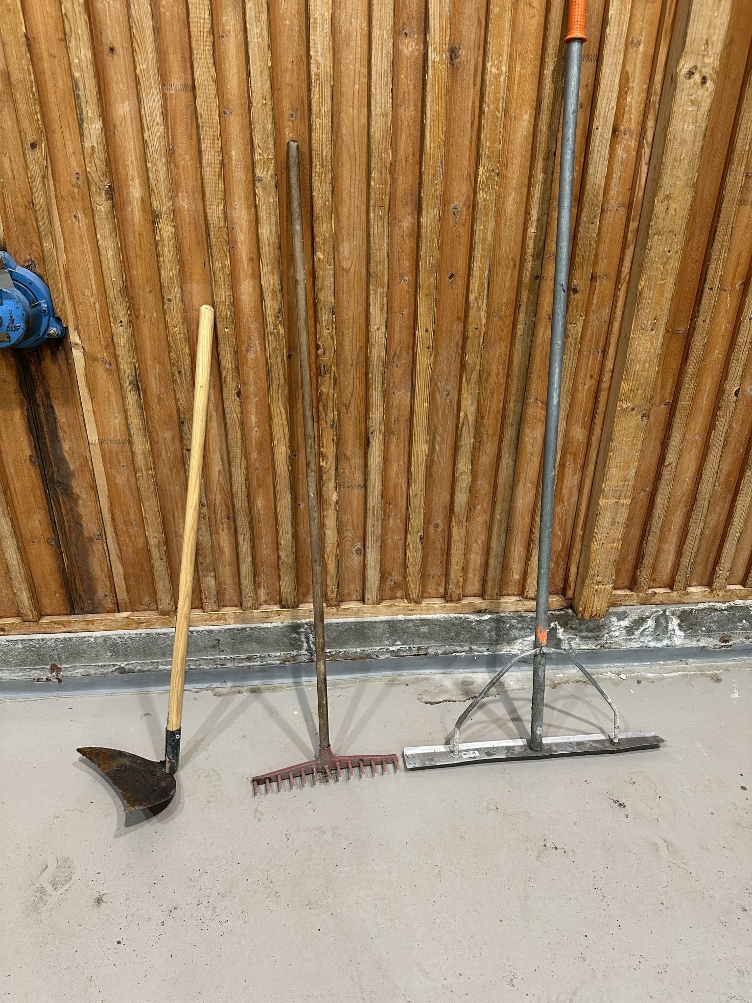 Ref: Ghl 6 og 13 1 x spade 1 x kost 1 x stål rive 1 x kultivator 1 x krafse 1 x plast rake 1 x avretter