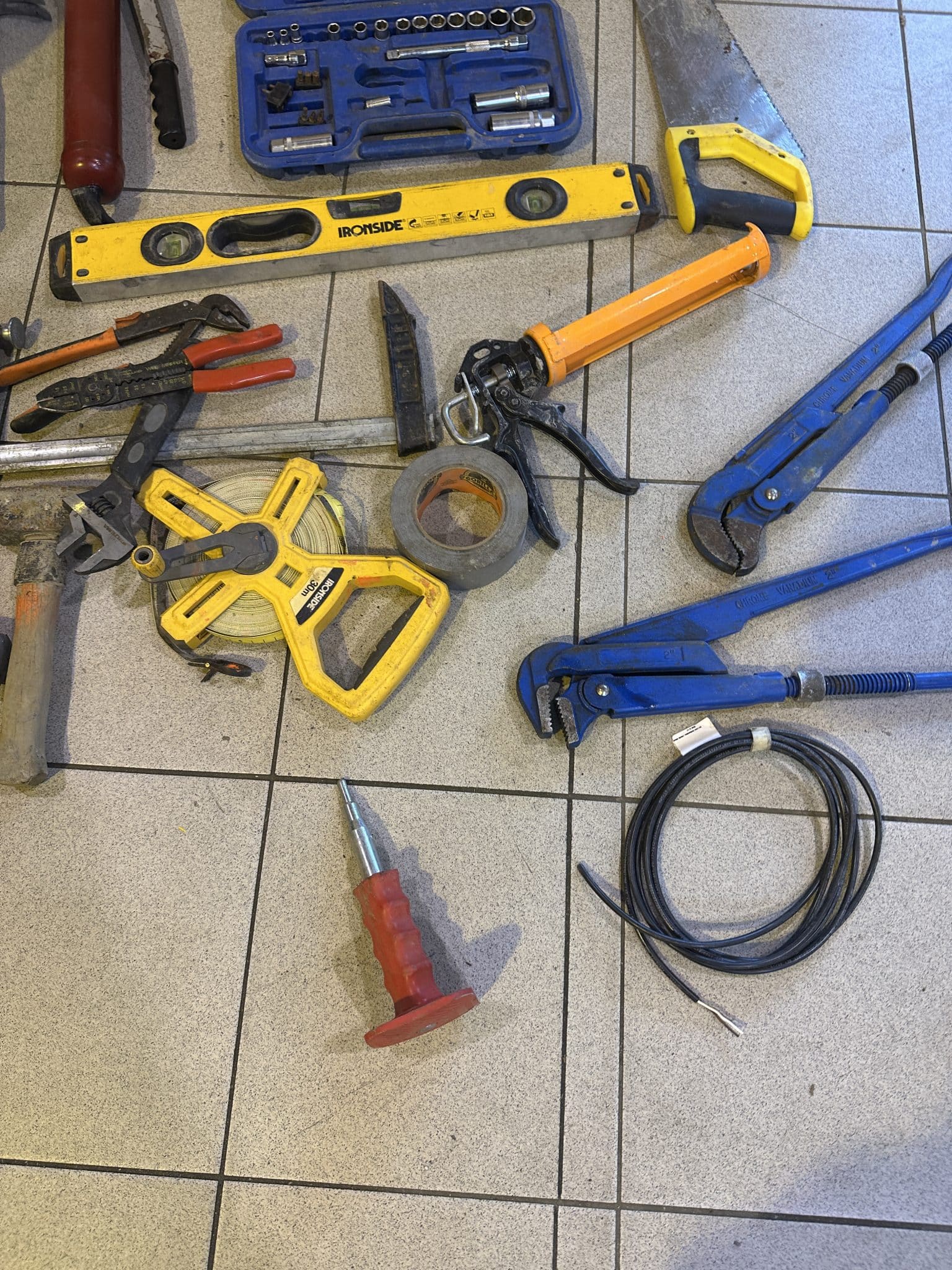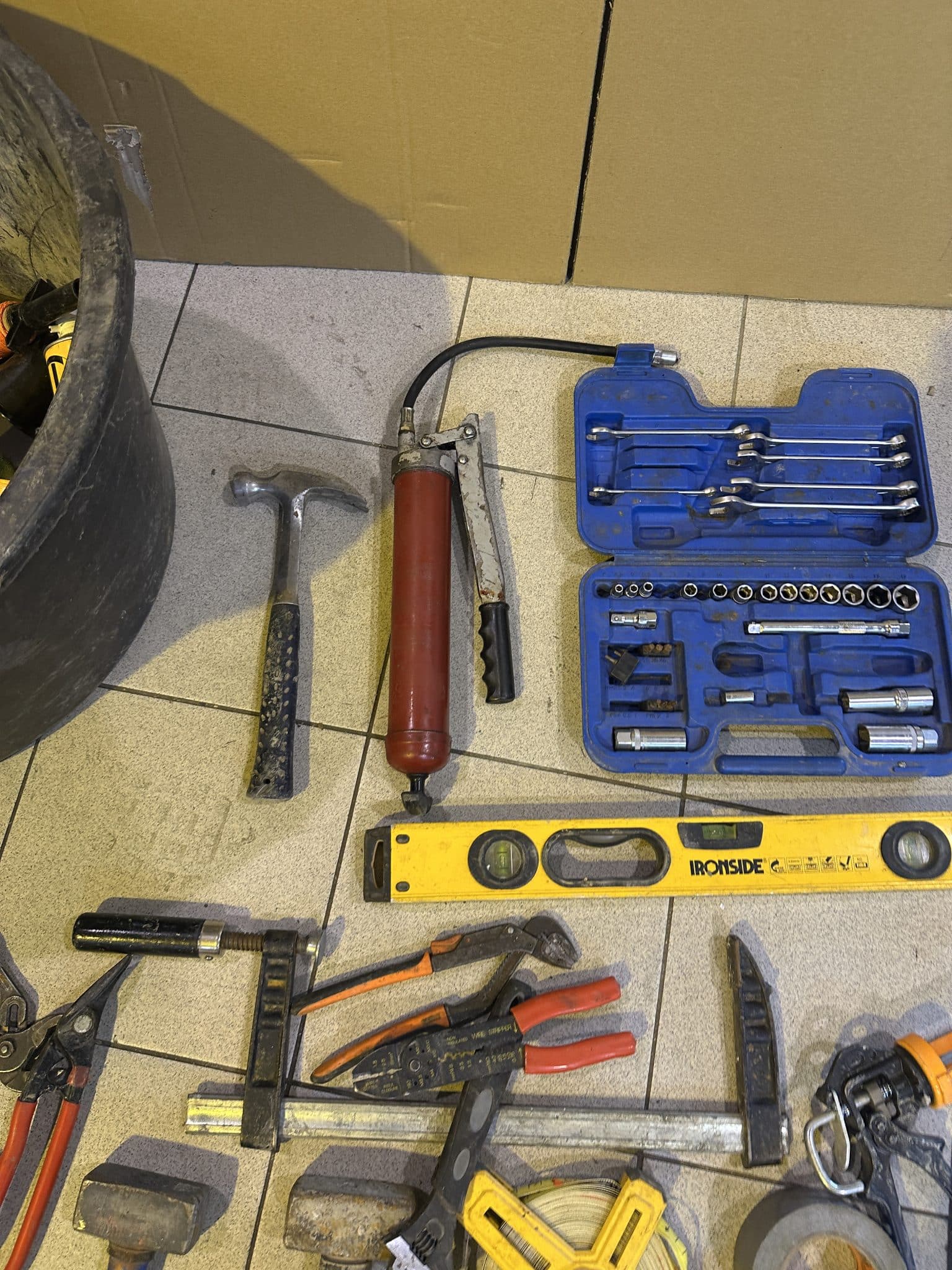 Ref: Ghl 354 Kasse med div. håndverktøy Selges brukt fra et konkursboAlt utstyret er startet og virker, med mindre det står noe annet i annonsen.