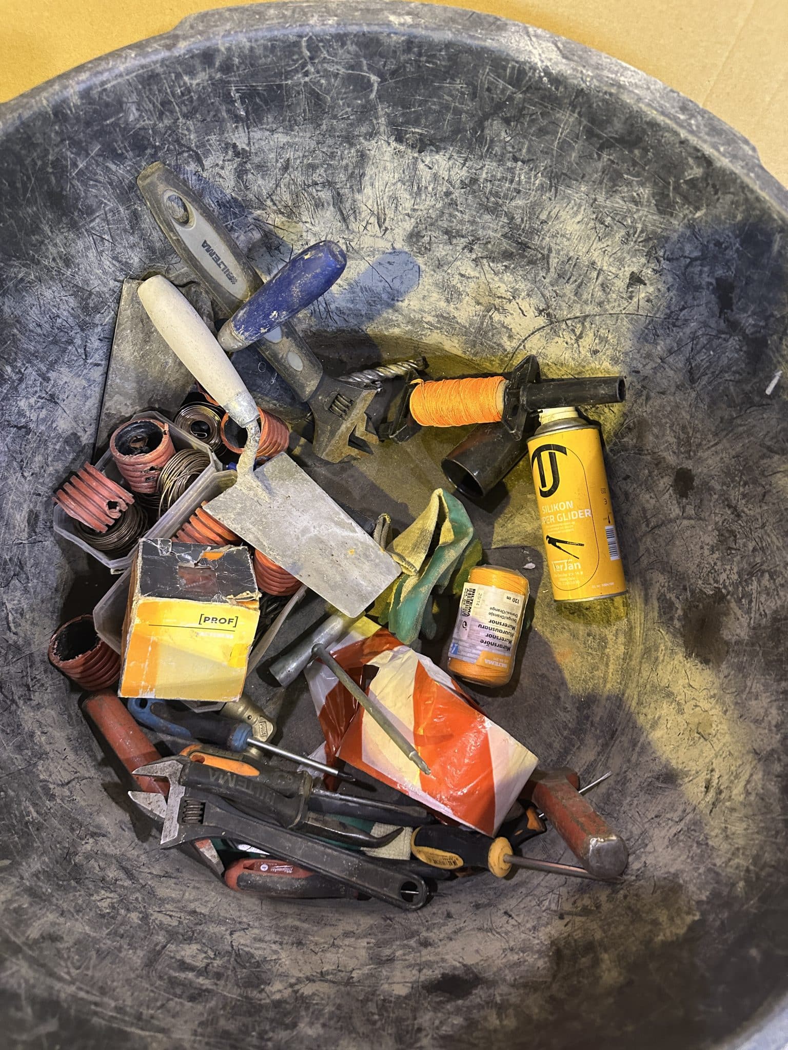 Ref: Ghl 355 Div. håndverktøy Murerbøtte Selges brukt fra et konkursboAlt utstyret er startet og virker, med mindre det står noe annet