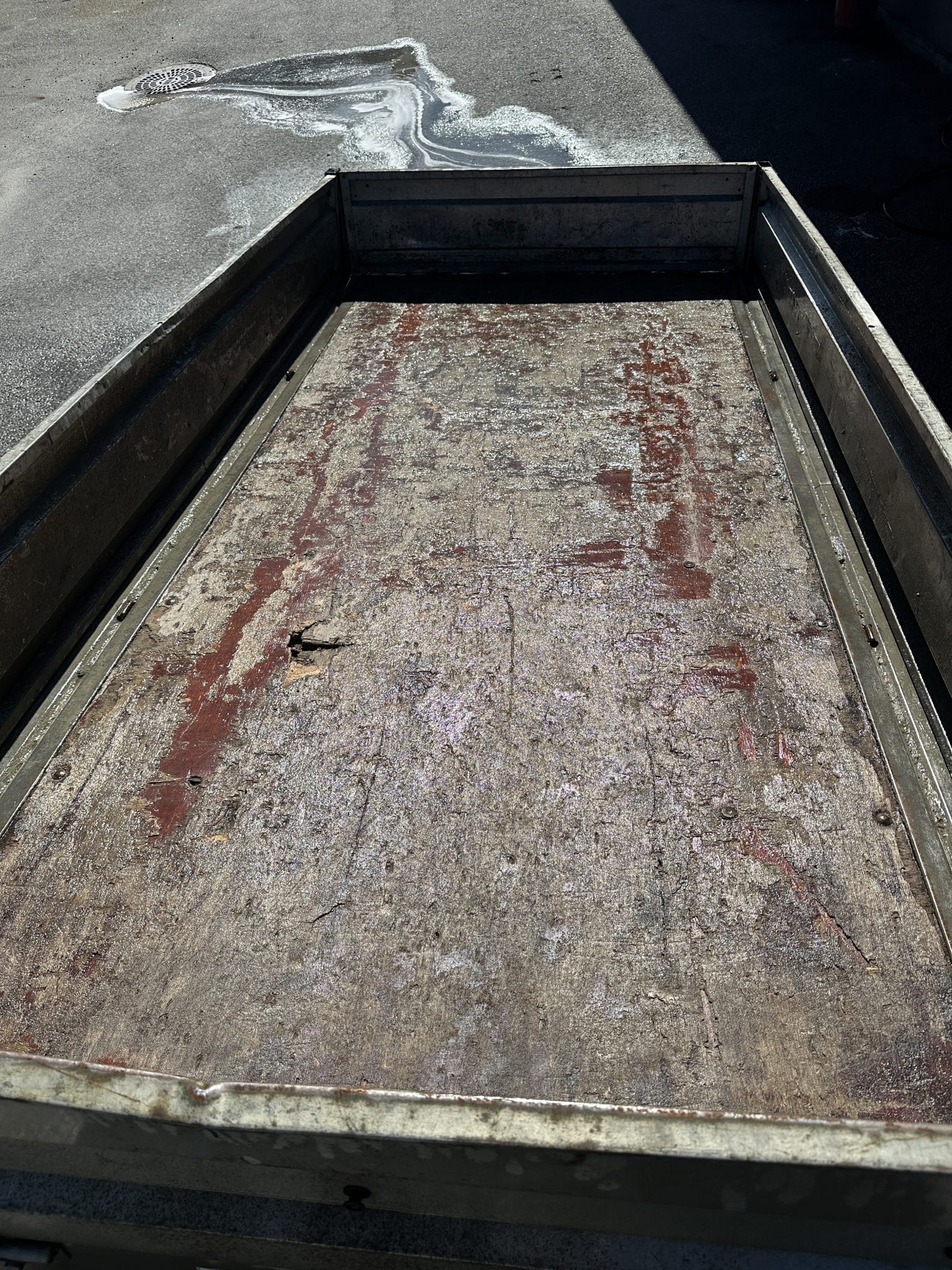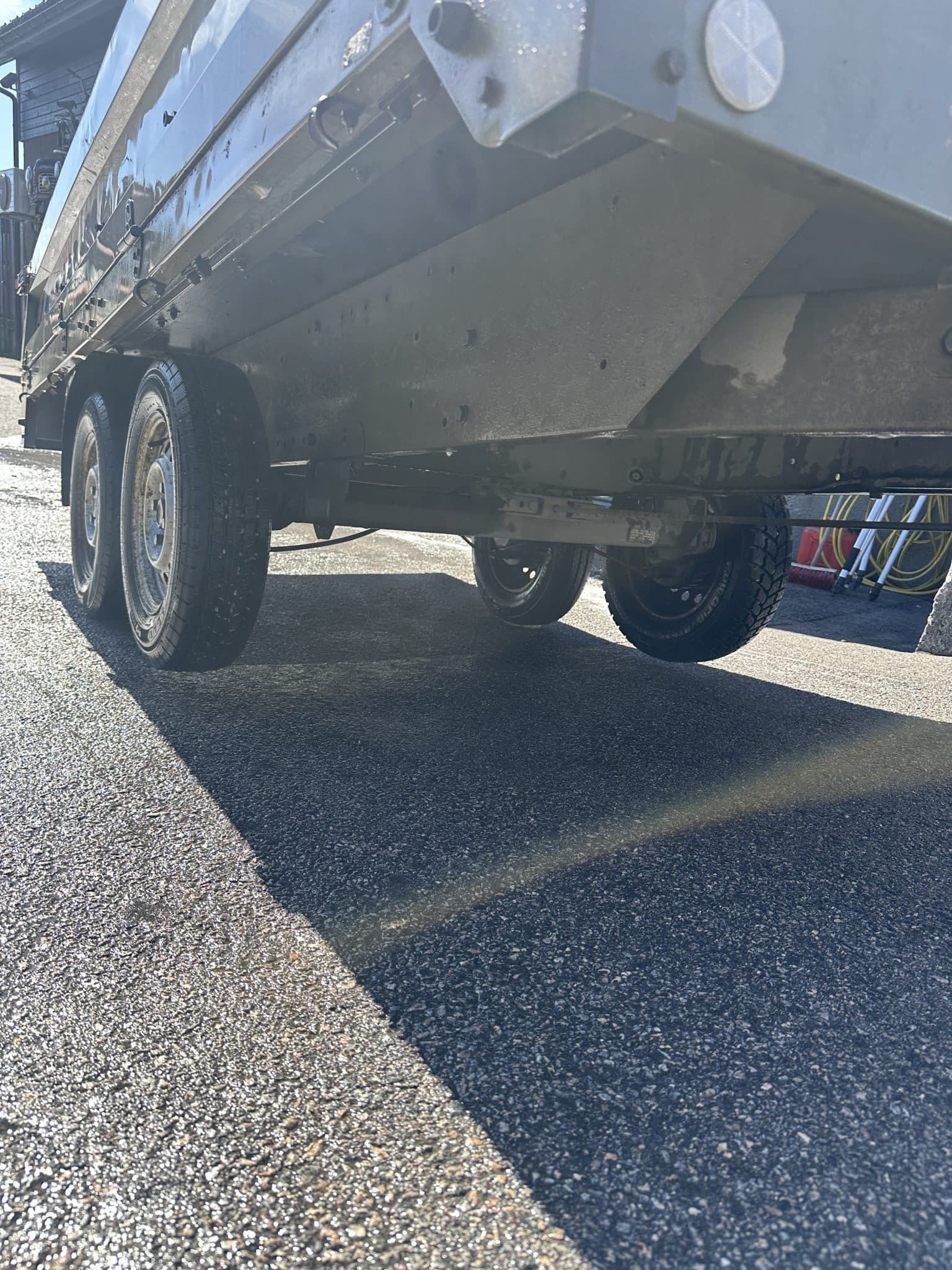 Venstre blinklys virker ikke, sølet betong i henger, hull i plate