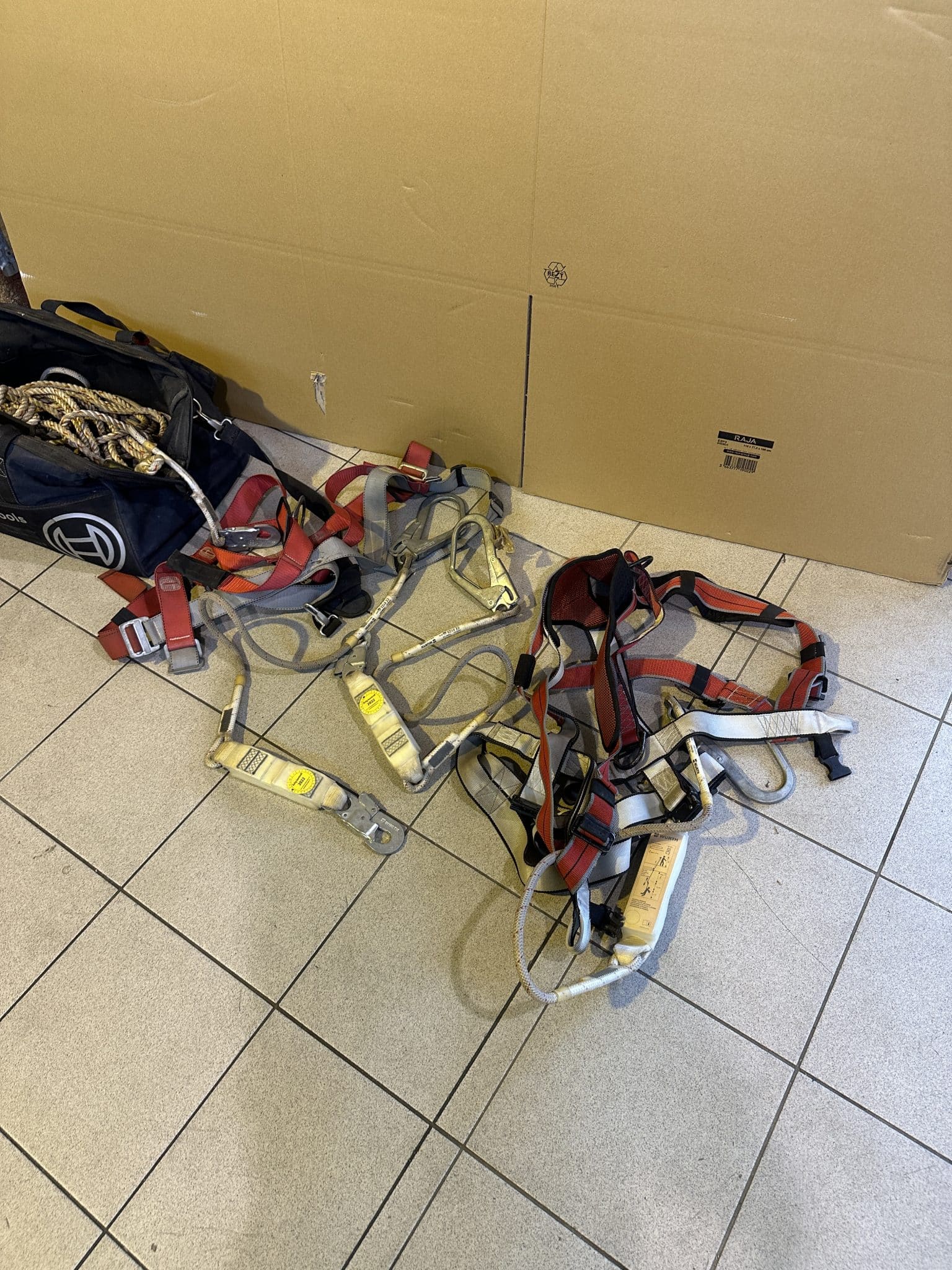 Ref: Ghl 311 1 x Bosch bag med fall sikring 2 x seler og tau kontrollert 2022 Selges brukt fra et konkursboAlt utstyret er sta