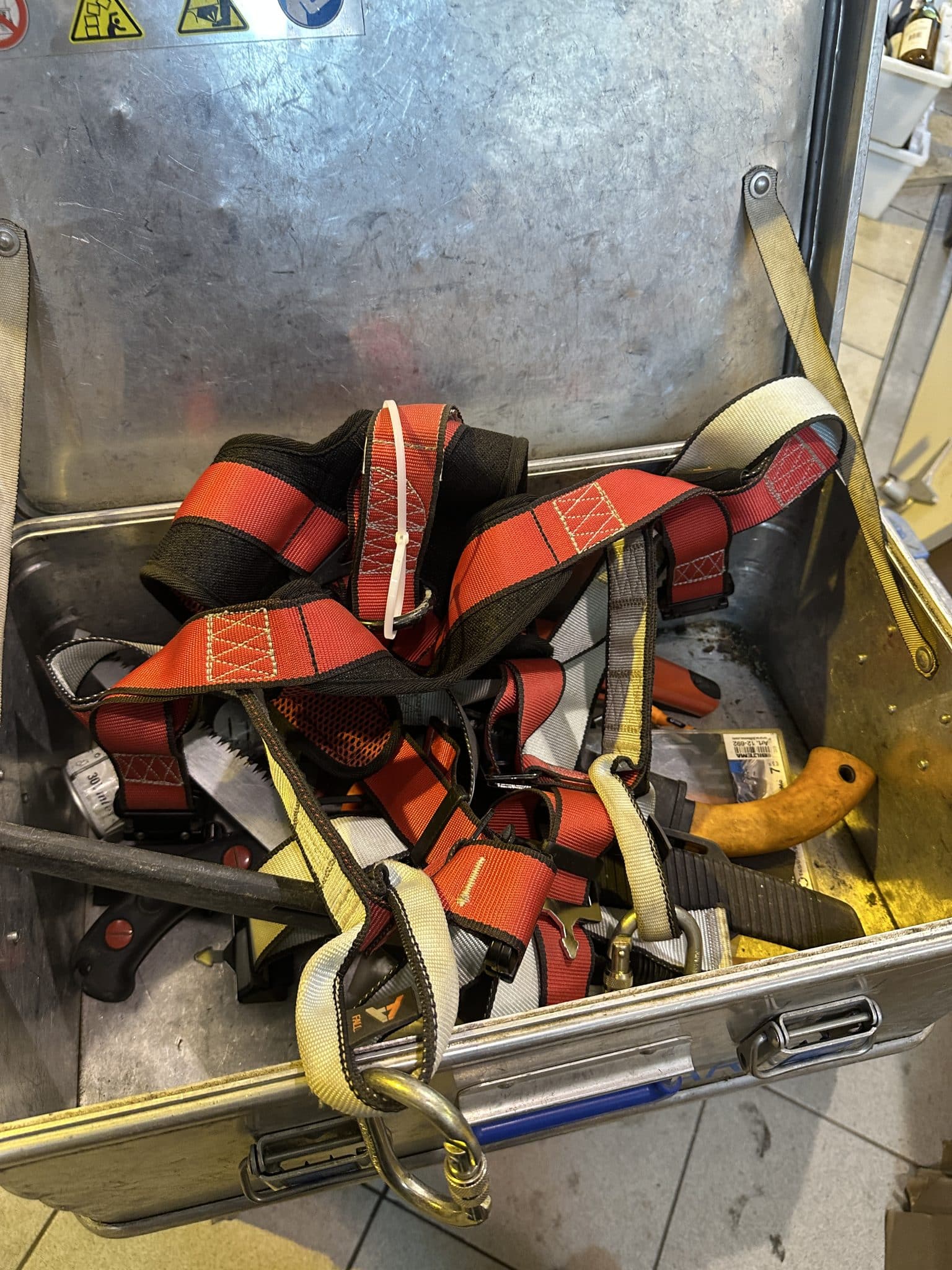 Ref: Ghl 312 1 x Zarges kasse Div. grein sager Fallsikring sele kontrollert i 2022 Selges brukt fra et konkursboAlt utstyret e