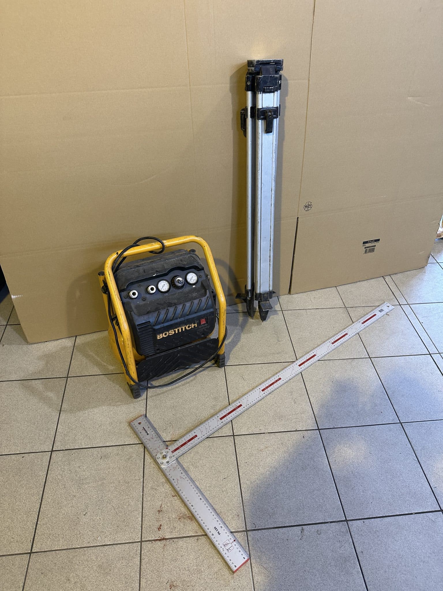 Ref: Ghl 314 Bostitch RC10SQ-M kompressor Laserstativ Hultafors vinkel Selges brukt fra et konkursboAlt utstyret er startet og